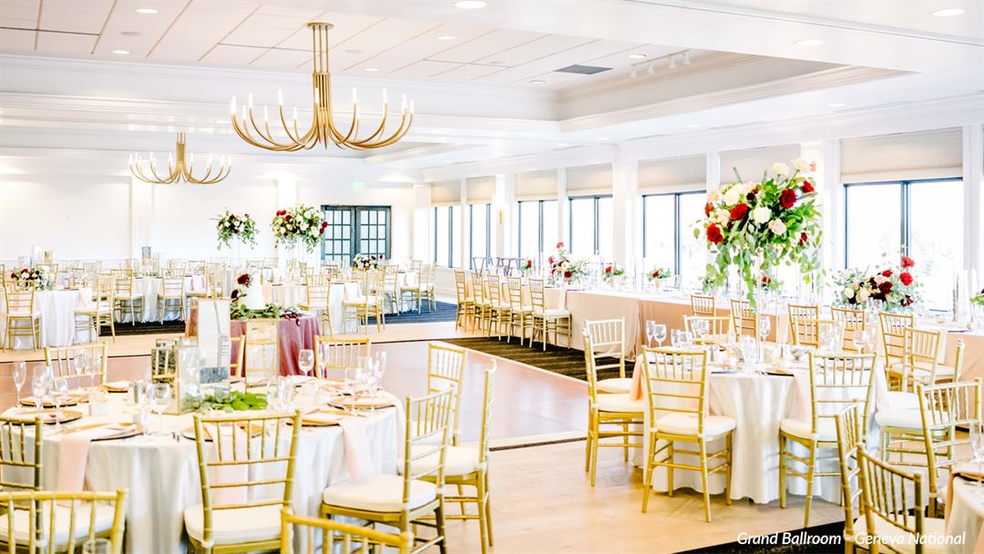 Geneva National’s exquisite scenery sets the stage for an enchanting outdoor ceremony, brilliantly pre-empted by cocktails on the resort’s lush lawns. Step into a romantic tented pavilion for the reception, or create a matchless milieu within the gracious Clubhouse event spaces – all of which boast panoramic lakeshore and fairway views. The best Wisconsin wedding venues at Geneva National Resort can accommodate small, intimate celebrations, mid-sized affairs and extensive galas, uniquely serving each with dedicated on-site wedding planners, customized catering, and boutique group lodging along the fairways.