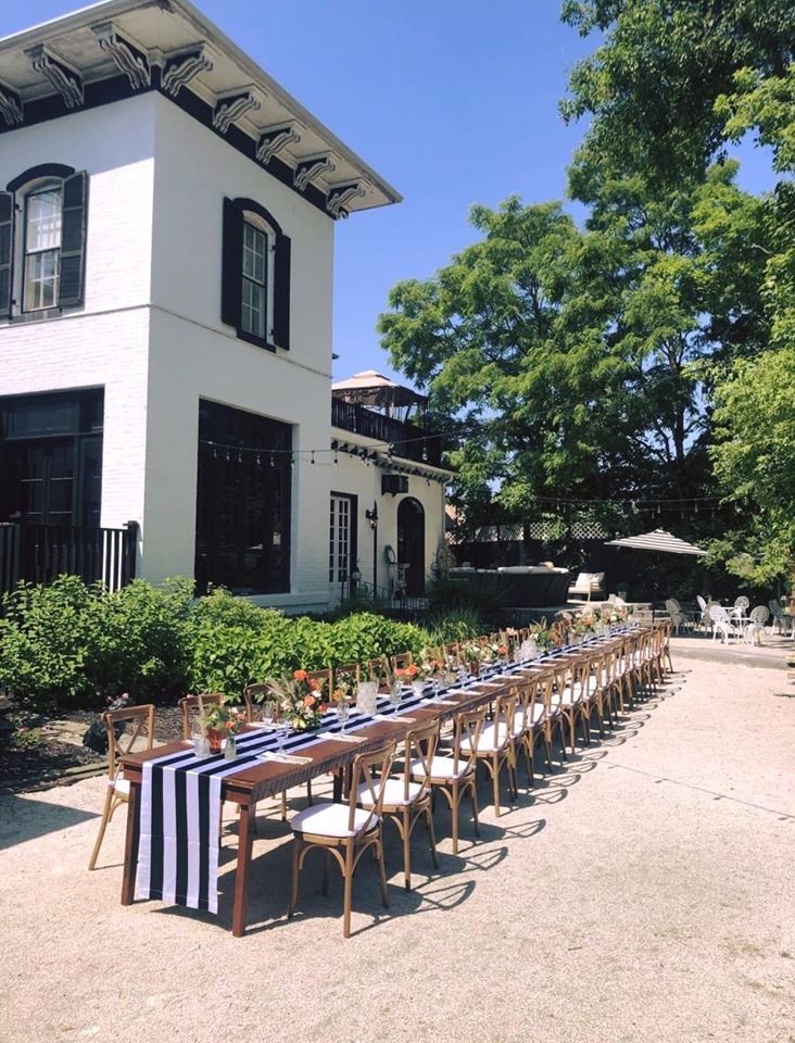 Upon entering the double doors guests are welcomed into an intimate foyer with chandeliers, a fire-lit receiving room is off to one side and crystal laden ballroom to the other. The 1880’s Apothecary Bar is adjoined by outdoor cabanas and wraparound deck leading to the front gardens. There is also an intimate lounge and marble breezeway connecting all the unique spaces.