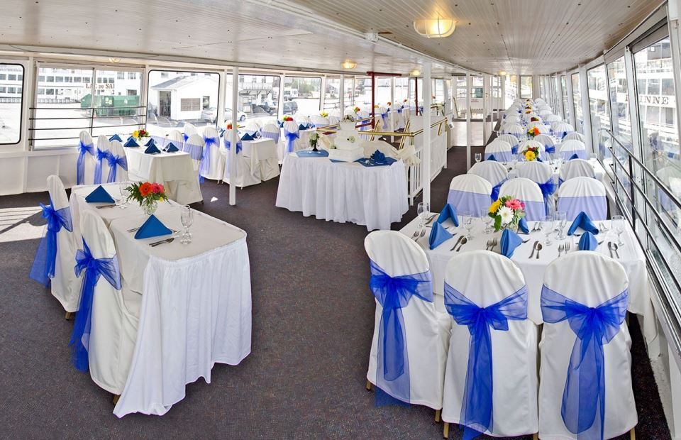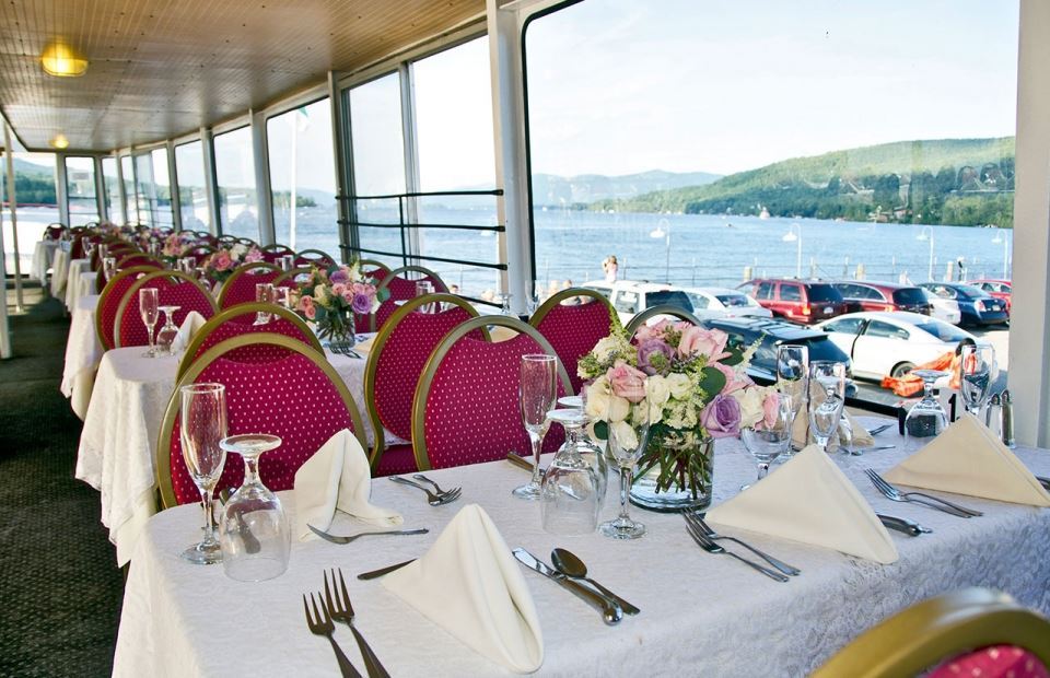 Have your special day aboard a private vessel exclusively for you and your guests. Create your own unforgettable wedding aboard our elegant boat, with the help of our experienced staff. Exchange your vows overlooking beautiful Lake George, and with three blasts of the ship’s horn, you set sail. Dine and celebrate your marriage as the sunset turns the sky to shades of pink and gold. Dance till the boat docks, but do take some time to head topside. The Saint on the Lake provides breathtaking and ever-changing backdrops for pictures and memories you will treasure for years to come.