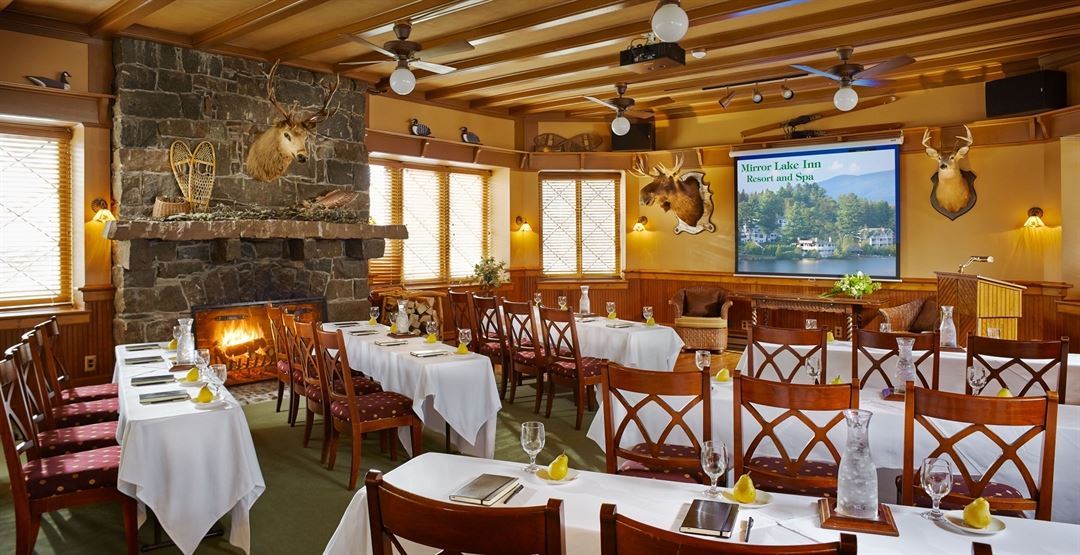 The Mirror Lake Inn is a 4 Diamond Resort on the shores of Mirror Lake. We are just a few minute walk to downtown Lake Placid where you will find great shopping and restaurants. We have 130 guest rooms and all of them face the lake and Adirondack Mountains. Our rooms offer some pretty amazing views. We have 3 restaurants on site including the areas only 4 Diamond restaurant called The View. We offer world class amenities including a private beach with complimentary canoes, paddle boards, paddle boats and kayaks. We also have an indoor/outdoor pool, oversize hot tub, sauna, tennis court, full service spa and workout facility. We have 5 meeting rooms that stay true to the Adirondack theme. We specialize in small to medium size groups of up to 90 people.