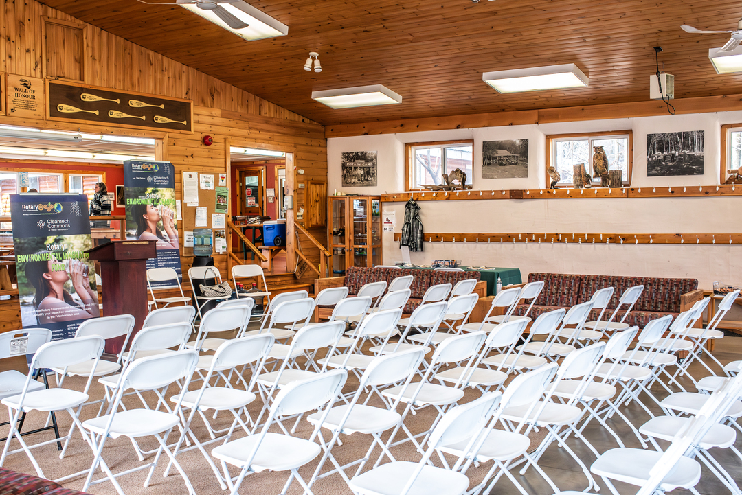 Located within the breathtaking wildlife sanctuary that surrounds Trent University, the Camp Kawartha Environment Centre (at 2505 Pioneer Road, Peterborough, Ontario) provides an inspirational and private setting to host your next meeting, workshop, or special event, just minutes away from downtown Peterborough. This unique building, accommodating up to 65 people, is a model of environmentally-sustainable architecture, construction and operation.