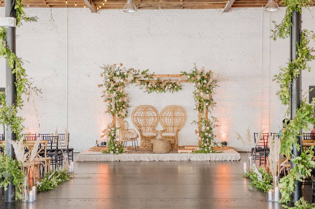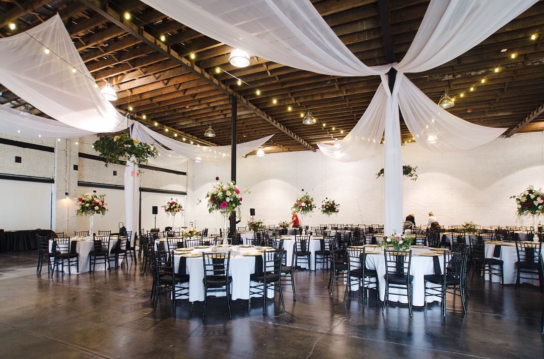 Our main space is the perfect space to have everything in one location. Depending on guest count, Haus 820’s main indoor space is big enough to accommodate ceremony, cocktail hour and reception. By using our original rafter ceilings, clients can hang draping to separate the large room to make smaller, purposeful spaces.