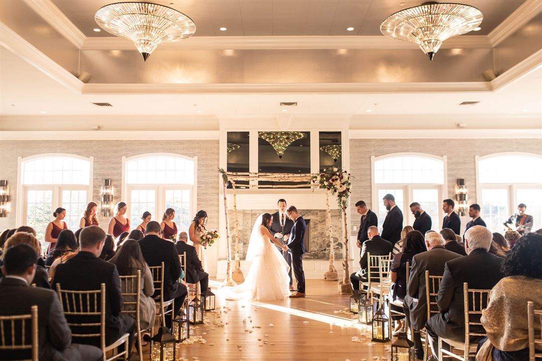 Your journey can begin with an outdoor ceremony followed by an elegant cocktail hour in our lounge with white marble tile, granite bar and three glass double-door entrances from cocktail to ballroom. As you enter the ballroom, eyes will be drawn towards 5 magnificent chandeliers suspended from an 18-ft tray ceiling, and floor to ceiling windows that highlight the distinctive and spectacular property only Eagle Ridge can offer. Our Venue at Eagle Ridge will provide the perfect elegant wedding reception with the best food and service.Let us create the experience of your lifetime, where opulence is our guarantee.