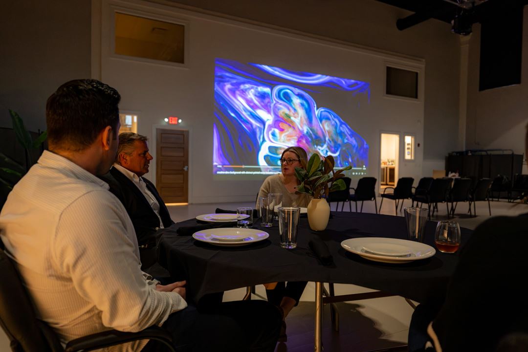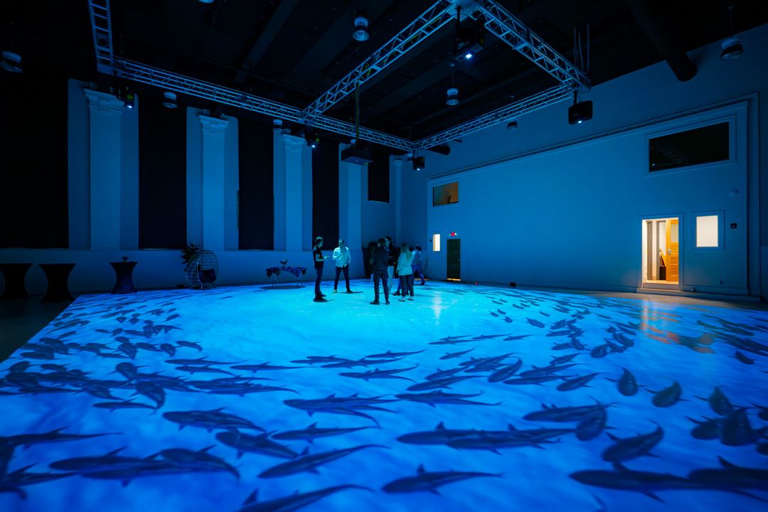 An immersive event venue where wall-to-wall 4K projectors and elegant architecture transform any gathering into a visually spectacular occasion.