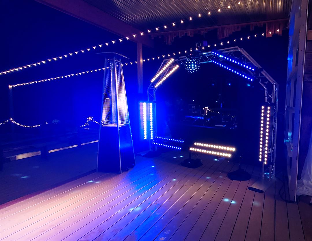 At DJ Czer Events we will start playing music prior to your guests arriving. DJ Czer will work with you before your big day to select what music you would like played for your processional and recessional, as well as while guests are arriving. He will also go over all the special music you want to have for your reception. We have a wedding consultant that will work with you through your ceremony and reception. She will coordinate with your vendors before your bridal party starts their walk down the aisle, and check with the officiant and photographer to make sure everything is in place and ready to go,as well as make sure all guests have arrived and are seated. She will cue you and your bridal party when it’s time to go so that you are perfectly timed with your music selection. Once you arrive at the reception DJ Czer and the coordinator will work with you and the bridal party to organize you for your grand entrance. DJ Czer will handle any special entry music you select. We make sure they know exactly where they are going so they don’t get confused, and the photographer doesn’t miss getting that important shot. We will even put tape marks on the floor for them to know where to stop for photos if necessary. During the reception we will coordinate with all the vendors and the people included in all of your special dances and toasts. We will make sure everyone is in the right place at the right time, and that photographers and videographers are ready so that no special moments are missed. We will coordinate with anyone making a toast or prayer, and make sure they have a wireless microphone to use. We will make sure no detail is missed on your special day. We check everything for your cake cutting, and make sure the cake is cut afterwards for your guests. We make sure if there is a champagne toast that everyone has a full glass before the toasts starts, and most importantly, we always check with you before announcing anything to your guests, We make sure you are ready to go, maybe you need a bathroom break before we start the first dance lol. We also offer custom and stock gobos for your event. We can put your names and or wedding date, or even a special phrase you like and project it on a wall or in the middle of your dance floor. You can see examples of this on our website. At DJ Czer Events, we want this day to be everything you have dreamed it to be and will do everything we can to make sure that is exactly what you get! DJ Czer will bring a 28 ft. wide set up of sound and lighting for your reception (this can be scaled down to fit your venue). We strive to beat the standard of 2 speakers and a small bar of lights! We want your reception to be the party everyone talks about long after it’s over!