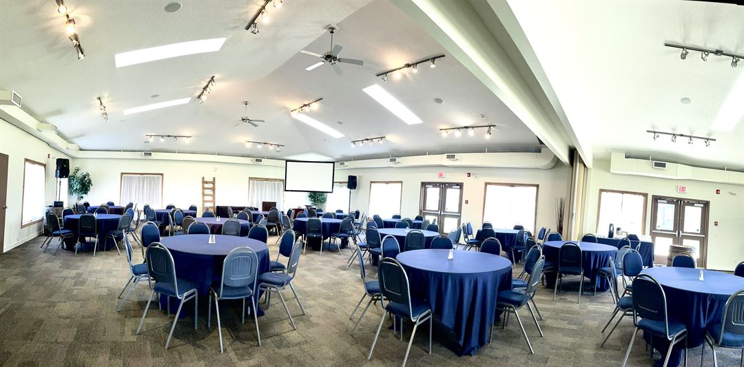 Our events building is a large, versatile space, with seating for 200 guests. The events building is situated adjacent from the golf clubhouse,