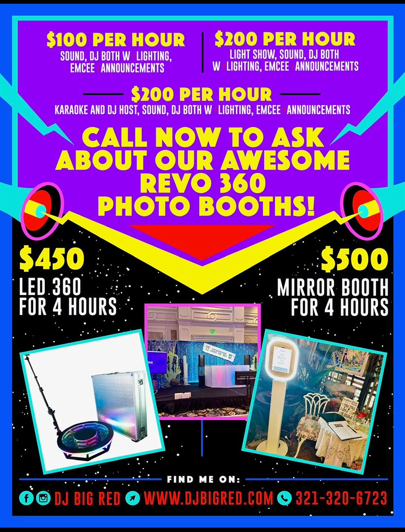 My specialty is interacting with your guest and keeping ANY party going. I can DJ any genre of music, I have an extensive library and access to anything that can be played. I enjoy working with people and I enjoy helping in any way I can. I MC, I make announcements and I ensure guest are aware of what the host needs communicated for the event. I also provide other party services such as Karaoke and Photo Booths. I'm available 24/7.....365!