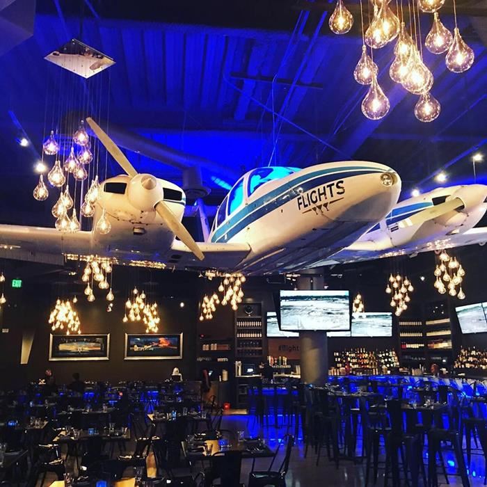 FLIGHTS offers a fun and upbeat atmosphere. With a Peter Lik airplane hanging overhead, FLIGHTS is sure to offer an experience like nowhere else. Our oversize dining room can be opened up for a large private party, or sectioned off for smaller semi-private events. We can accommodate groups of any size, big or small.