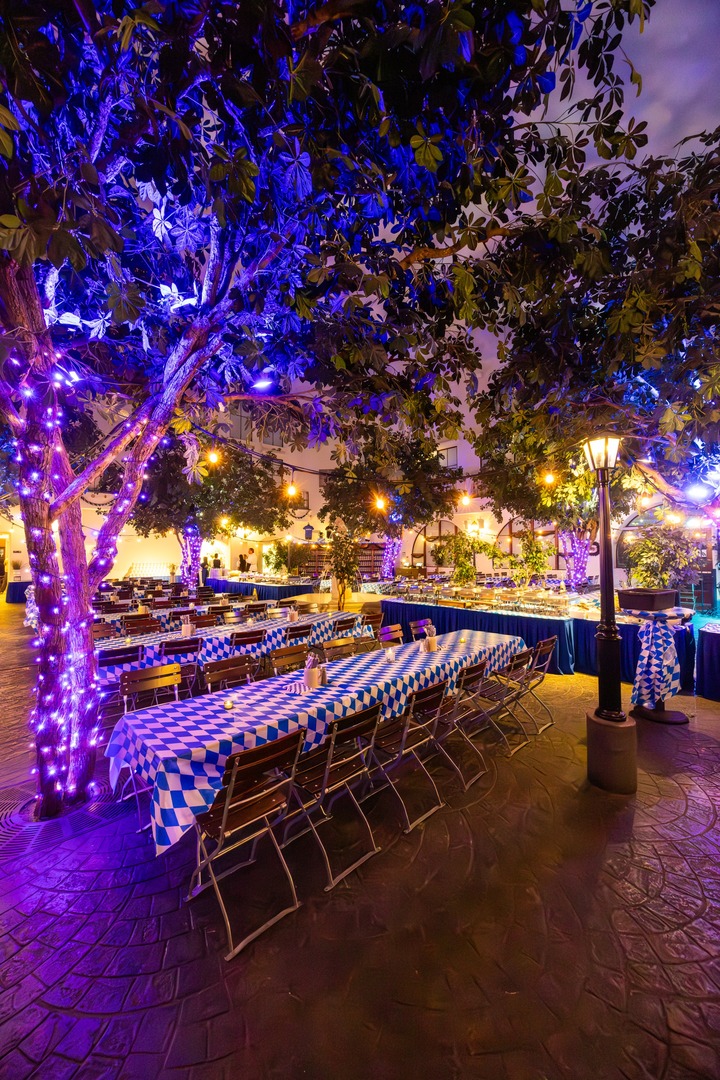 Drink in the atmosphere of our authentic biergarten. Complete with trees and a blue sky over head, it is an exact replica of the original in Munich, Germany.