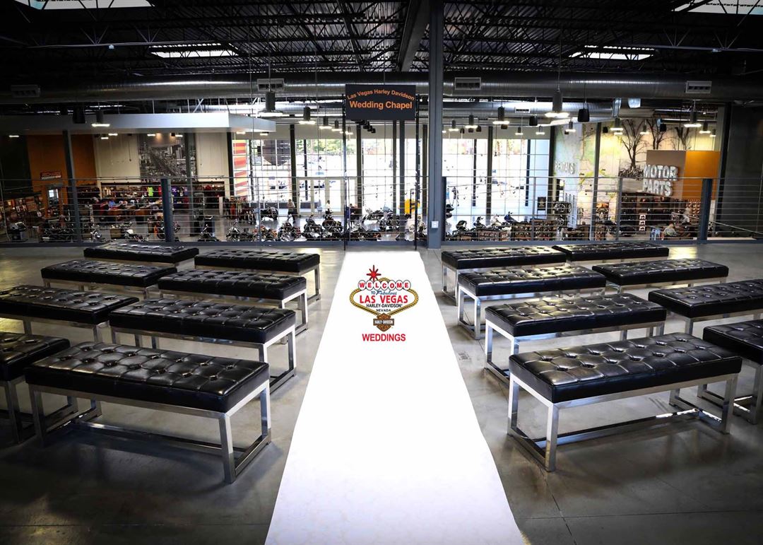 This one of a kind Las Vegas wedding venue is situated inside the new Harley Davidson store on the Strip. Overlooking a showroom full of America’s favorite motorcycles, Las Vegas Harley Davidson Weddings is the perfect wedding or vow renewal venue for the ultimate Harley Davidson fan.