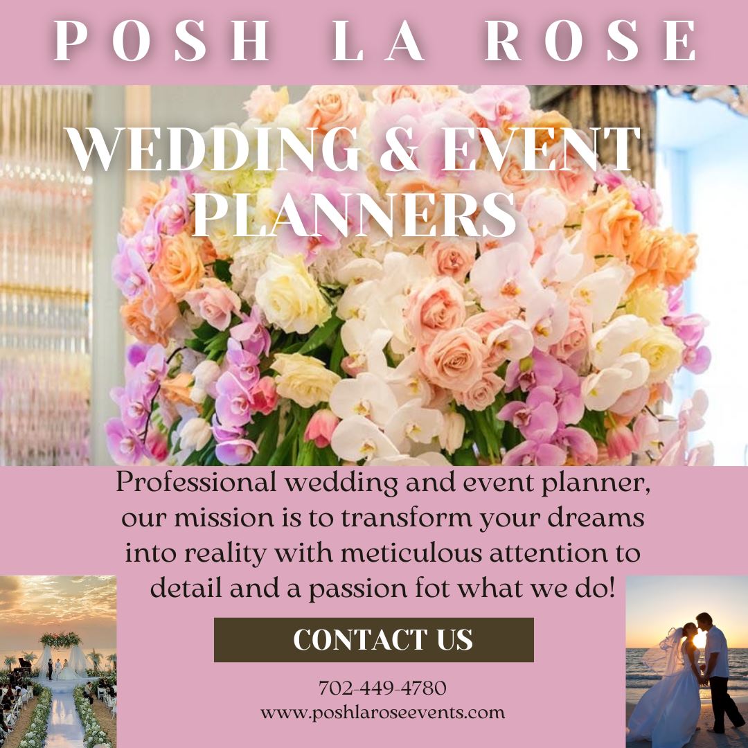 Posh La Rose Wedding and Event Planning is a premier service dedicated to creating unforgettable experiences tailored to individual tastes and preferences. With a keen eye for detail and a passion for elegance, our team transforms visions into reality, ensuring every aspect of your special day is meticulously planned and flawlessly executed. From intimate weddings to grand corporate events, Posh La Rose offers bespoke planning services including venue selection, decor design, catering coordination, and entertainment arrangements. We pride ourselves on our creativity, professionalism, and commitment to excellence, making your celebration not just an event, but a cherished memory that lasts a lifetime.