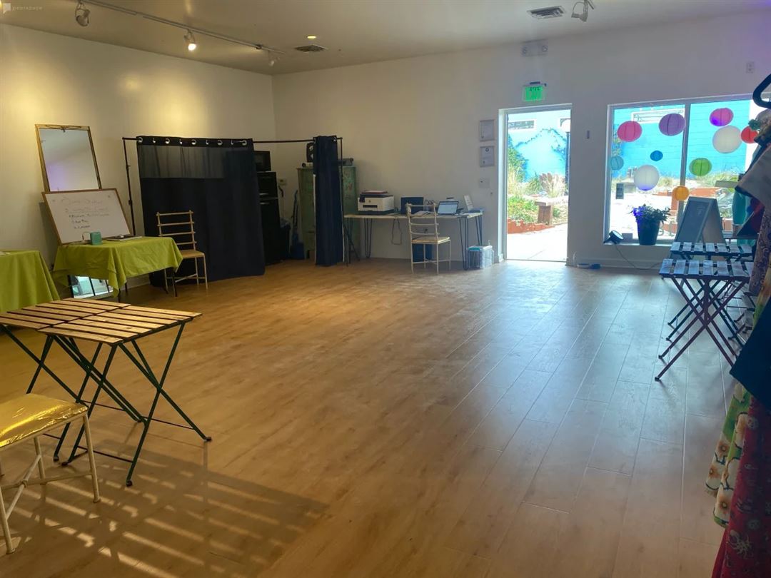 Our HQ studio is located in the heart of The Arts District of Las Vegas and offers a well-maintained 23' X 27' foot creative space with 10' ceilings for rehearsals, workshops, filming, small private events, client meetings & other creative uses.