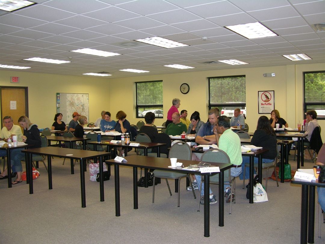 Our school provides real estate education programs for real estate professionals in NYS. We have a large classroom, max capacity 60 and a small classroom, max. capacity 40, both set-up classroom style, equipped with LCD proctors, tables, chairs and instructor tables.