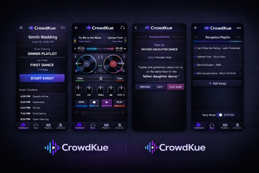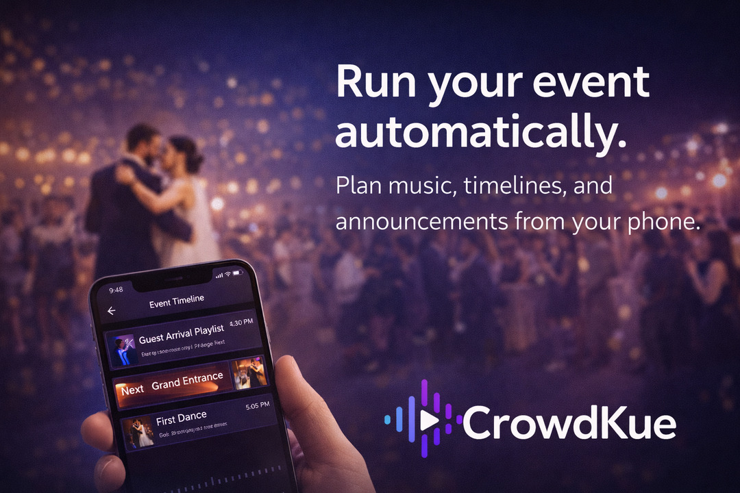 CrowdKue™ replaces the DJ for weddings, parties, and events.