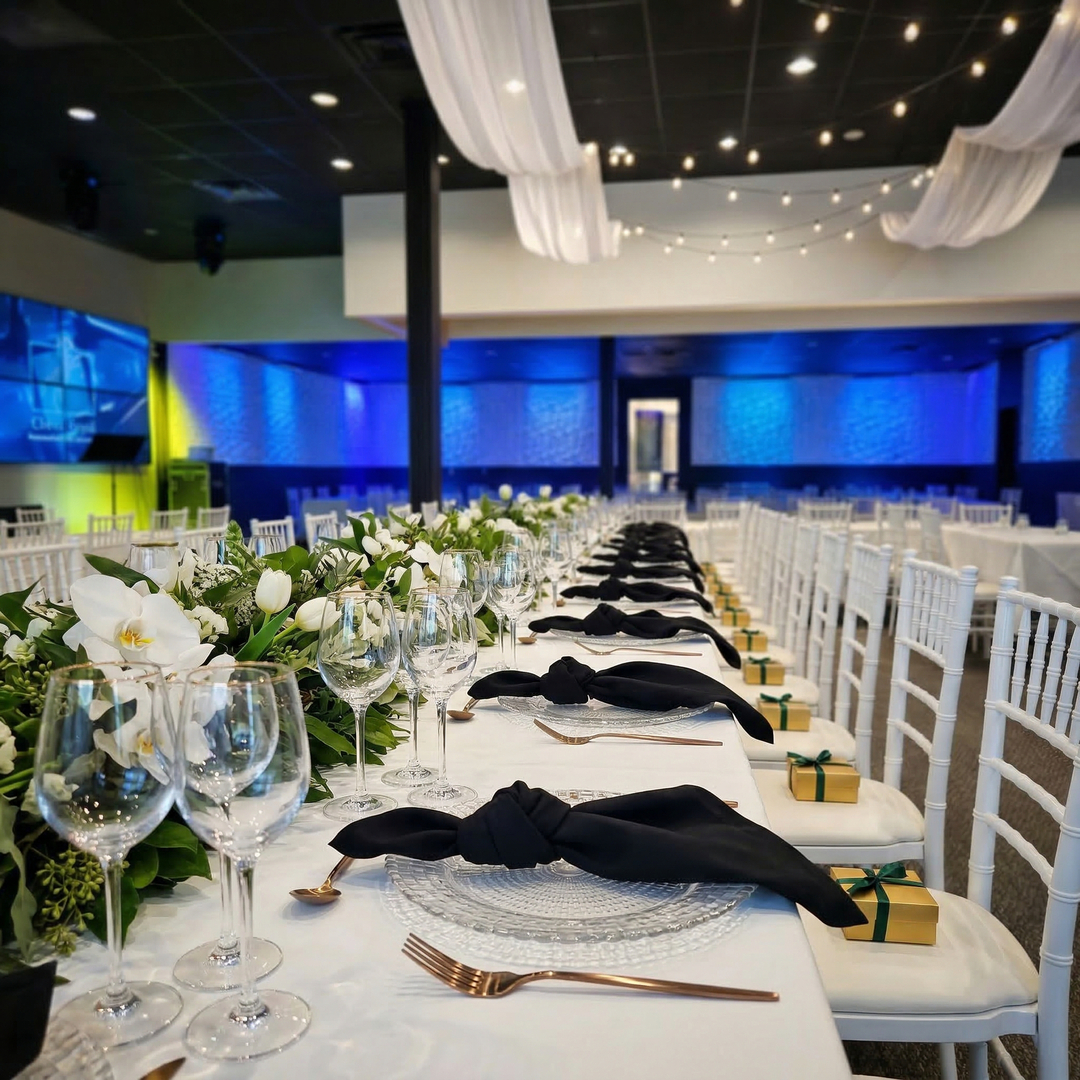 We offer customizable layouts, a professional stage with advanced audio-visual equipment, premium catering, and large on-site parking. Our experienced event coordinators work closely with each client to deliver seamless, unforgettable events tailored to their vision.