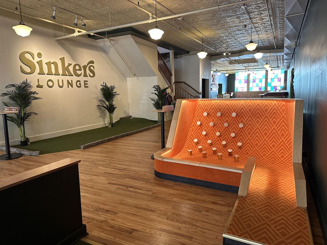 Sinkers features nine colorful and creative mini golf holes and state of the art tabletop golf. Blade & Timber offers six axe throwing lanes along with TVs, counter-height tables for drinks and snacks.