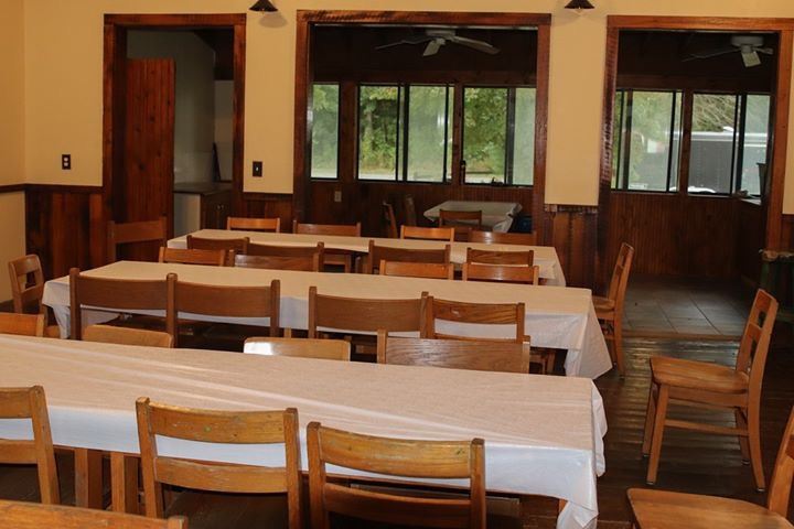 Cedar Lodge excels in those that are looking for a smaller, unique facility for their venue. Cedar Lodge is set on scenic Lake Nicholas, a totally private, spring fed lake. It has 10 screened rustic cabins for overnight guests during warmer months, or bunk housing in our renovated farm house for 20. Additionally there is a upscale second story apartment that has two bedrooms (both with twin beds), living room, two baths and kitchenette unit listed on air bnb. A full commercial kitchen is located on our historic dining hall, a renovated church/barn that was moved on site in the early 1900s. Catering/food service can be provided. Our event dining hall, which boasts wrap around porches has seating for 80. The Cedar Lodge property is perfect for a get together that prefers to stay on ground, move around outside and enjoy each others company for one day, or several. Campfires by the lake, a hike in the woods, camping out in nature will be perfect at this facility.