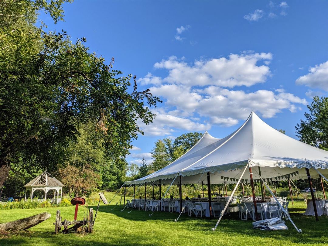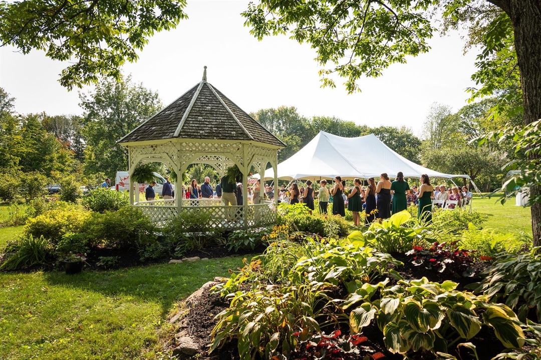 Maple Moon Farm is best suited for couples interested in having an outdoor wedding with 150 guests or fewer on an authentic Maine working farm (maple syrup and high bush blueberries) with lots of old New England charm. The gazebo (the site typically chosen to hold the wedding ceremony) is surrounded by wildflowers, fruit trees, berry bushes, a large vegetable garden, maple trees, old fieldstone walls, and antique farm equipment. Parking is available for up to ~ 75 cars in a flat, grassy area adjacent to the ceremony and reception site. Outdoor conditions are most favorable to hold a wedding at Maple Moon Farm from July through mid-October.