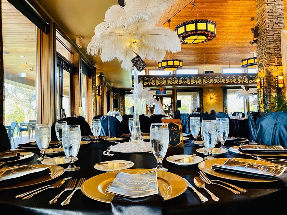 From the moment you take in the scenic splendor with its lush rolling hills, majestic moss-draped oaks and spectacular sunsets, you know Black Diamond is the perfect place to celebrate a wedding. Our staff realizes that your wedding is the most exciting day of your life and one that requires very special planning and organization; therefore, our highly professional trained team, led by Merideth Rossetti with her vast experience, will provide personalized service for which our property is known. On your wedding day, the backdrop of the Quarry will provide stunning views and a perfect setting for your special day. With 28,000 square feet of well -appointed space, our Clubhouse has an air of romantic elegance, the timeless feel of a Scottish club and the relaxed warmth of a New England inn. Richly accented with dark fabrics, wood, and stone the dining room has a soaring wood ceiling that peaks in a widow's watch skylight more than 40 feet overhead. Giant windows and breathtaking views make this a perfect location for your special day.