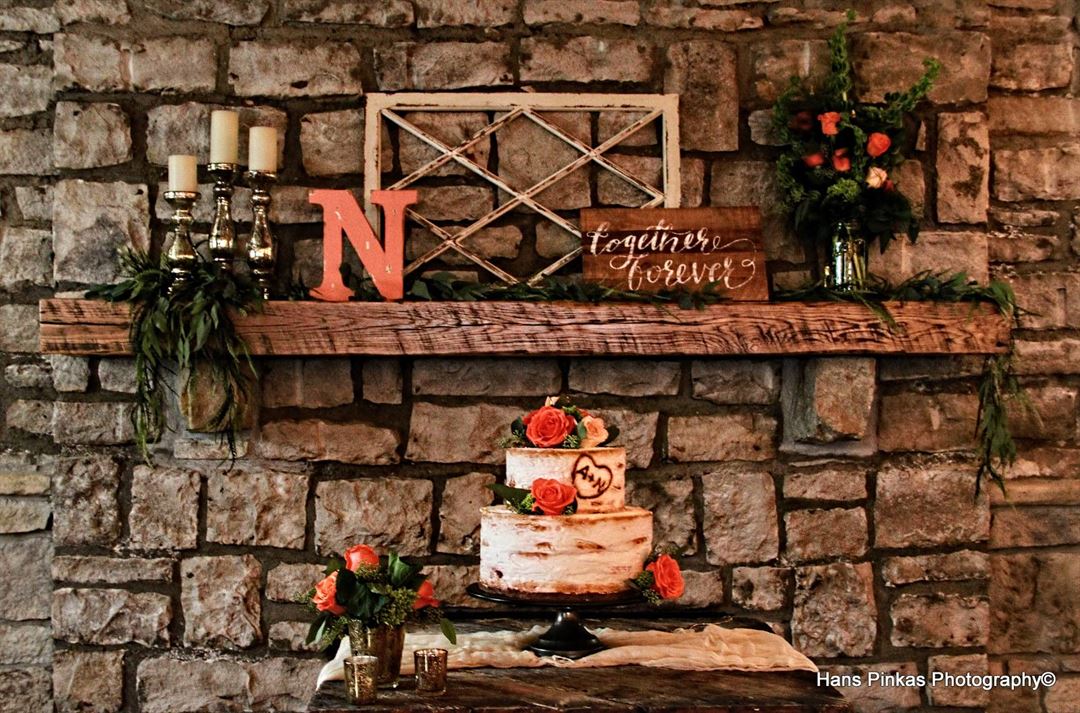 Lake Shore Plaza Event Space is a classic venue surrounded by trees and is located across the street from the Lake Lotawana Rose Garden in Lee’s Summit, Missouri. The rose garden landscape boasts seasonal flowers, brick walk way and gazebo and Arbor. The arbor is picture perfect location for wedding ceremony or photographs. Lake Shore Plaza has a unique modern, yet rustic feel. Two-story foyer, stone lined staircase and water feature greet you. Exposed stone walls, stained concrete floors, rustic mantle, fireplace and the custom wood bar help create the perfect backdrop for your wedding celebration.