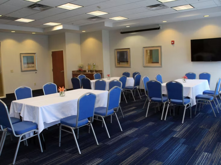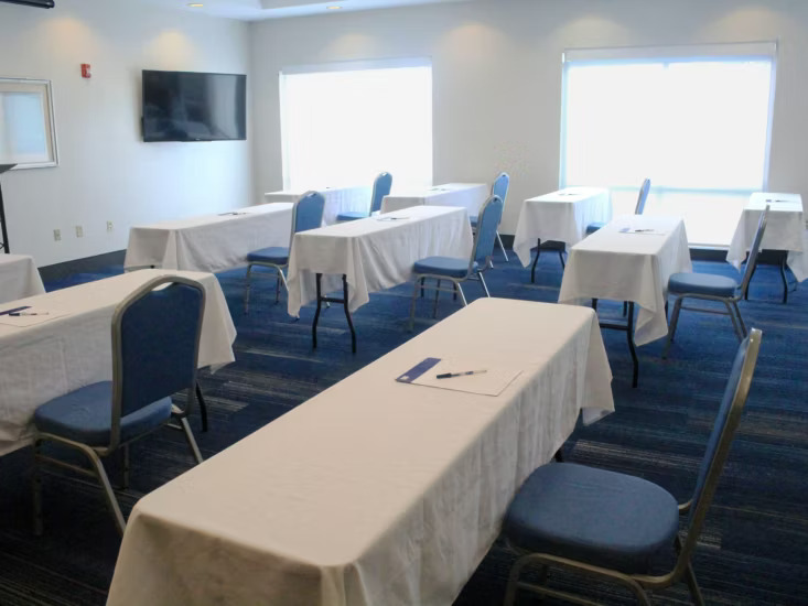Meeting accommodates up to 49 people in a variety of settings. Choose from a variety of local caterers or feel free to bring in your own. Audio visual equipment is available for rent and the meeting room rental fee is based on season and time of day