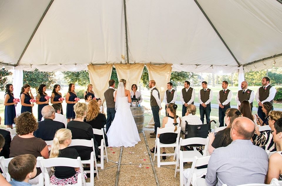 Just 5 minutes from downtown Wilmington you will find a gorgeous setting for your special day. Magnolia Greens offers several lovely options for your wedding. Our outdoor site features a gazebo by the lake and the private banquet hall brings the outdoors indoors with its floor to ceiling windows. Full service catering is available in the Magnolia Greens Club Room for an intimate gathering or a sit down reception. Tables and chairs as well as fine linens and china are provided. We will even set up and break down for you.
