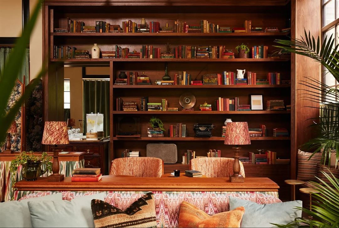 A reimagined 1970s lodge becomes the backdrop for a writer seeking inspiration—morning hikes, evenings in the library lounge writing by the fire, and nights at the sophisticated bar gathering with fellow creatives. We designed our House as a harmonious retreat with modern luxuries and furnishings, while adorning the interiors with the patterns and palettes of the surrounding landscape that have inspired so many.