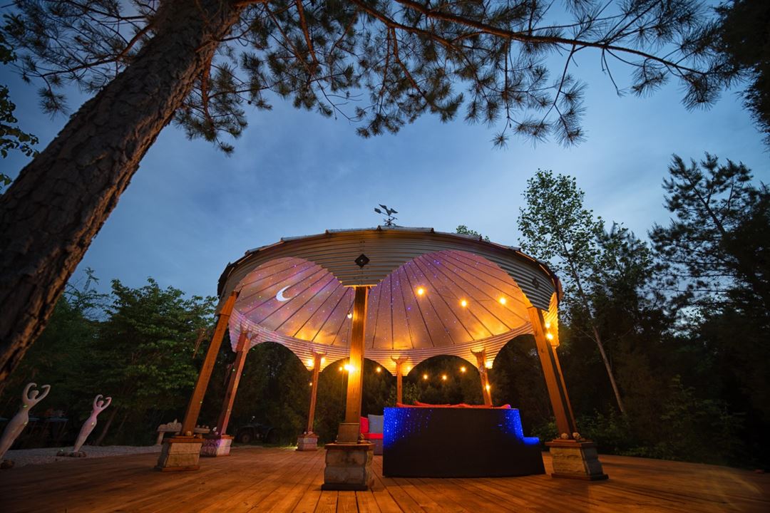We have the Temple of the Heart (a repurposed grain bin gazebo), a magical space for your rustic, intimate wedding. We are officiants as well. Come as just a couple or with up to 50 guests. Spend your wedding night in the Love Lodge cabin and dream under endless stars of your future together.