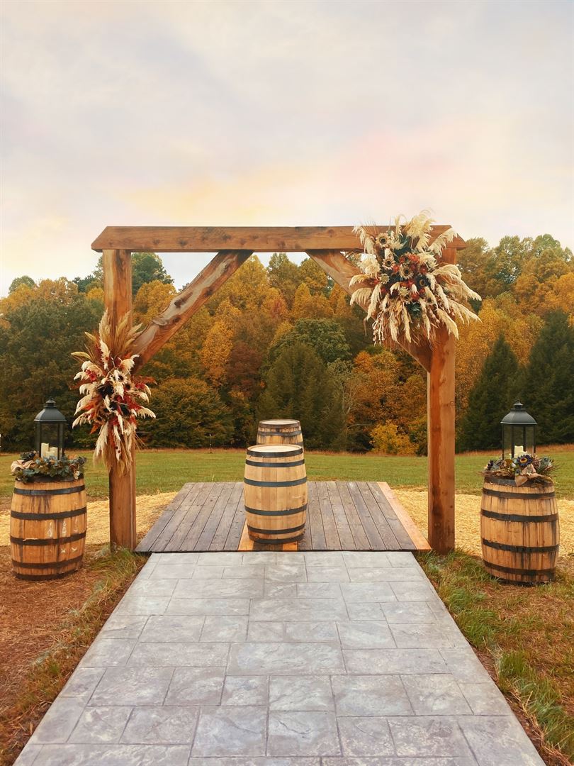 The Hemlock is an authentic Kentucky Tobacco Barn that has been fully restored with a touch of southern elegance. The Hemlock blends rustic features with the perfect thoughtful details. The 4,000 square feet of space is fully open with sweeping views of the farm and the barn is surrounded by giant oaks and hemlock trees on the property. The event space has many beautiful details that are unique to only this wedding venue. The massive barn doors are original from the days the barn served as a burley tobacco barn on this same Kentucky farmstead. The outdoor ceremony area holds panoramic southern views and a hewn arbor crafted from oversized hemlock beams.