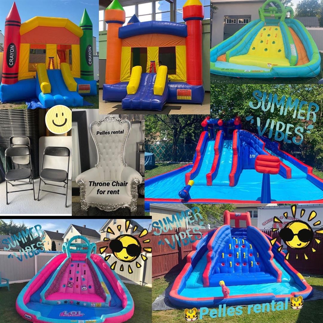 Special Features: For rent tables , chairs , throne chairs , cylinders , cover for tables and chairs , bounces houses , waters slides and more