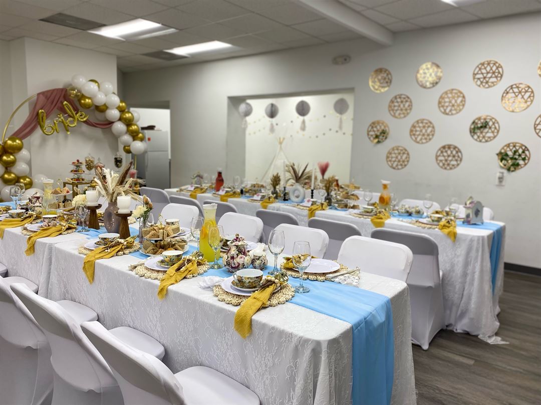 The ambiance of our venue exudes warmth and flexibility, allowing you to transform the space to match your vision effortlessly. Whether you're hosting a birthday party, anniversary celebration, baby shower, or any other intimate gathering, our space offers a versatile canvas for your creativity!