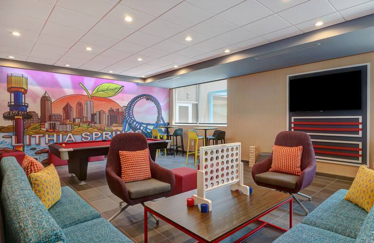 Just south of I-20, our hotel is within five miles of Six Flags Over Georgia and Sweetwater Creek State Park. We’re down the road from Six Flags Industrial Park and dozens of businesses. Downtown Atlanta is 15 miles away. Unwind after a busy day in our large lobby with 24-hour snack shop or go for a swim in our heated indoor pool.