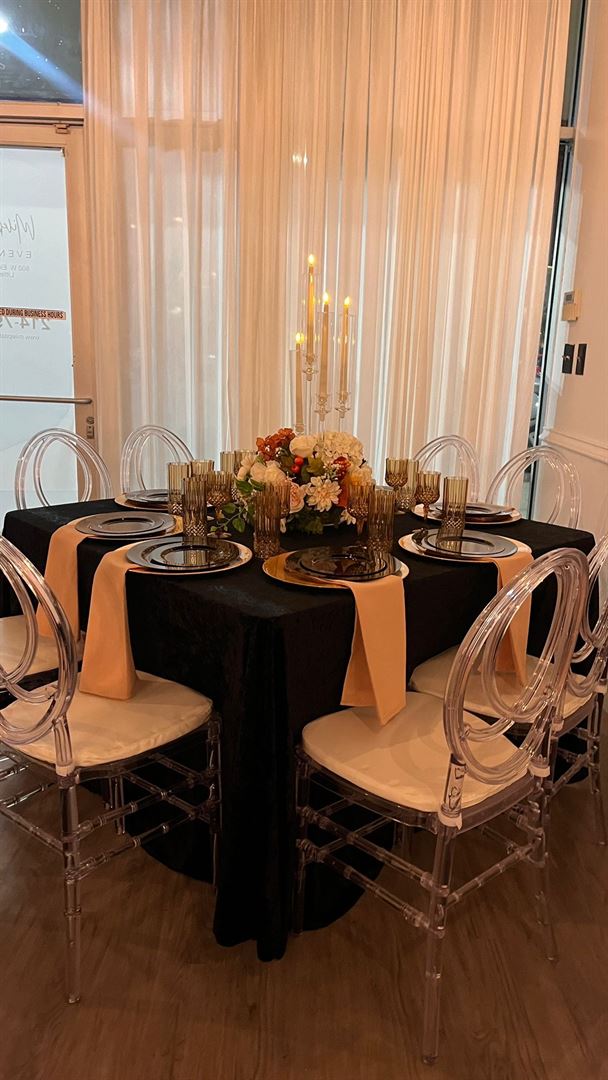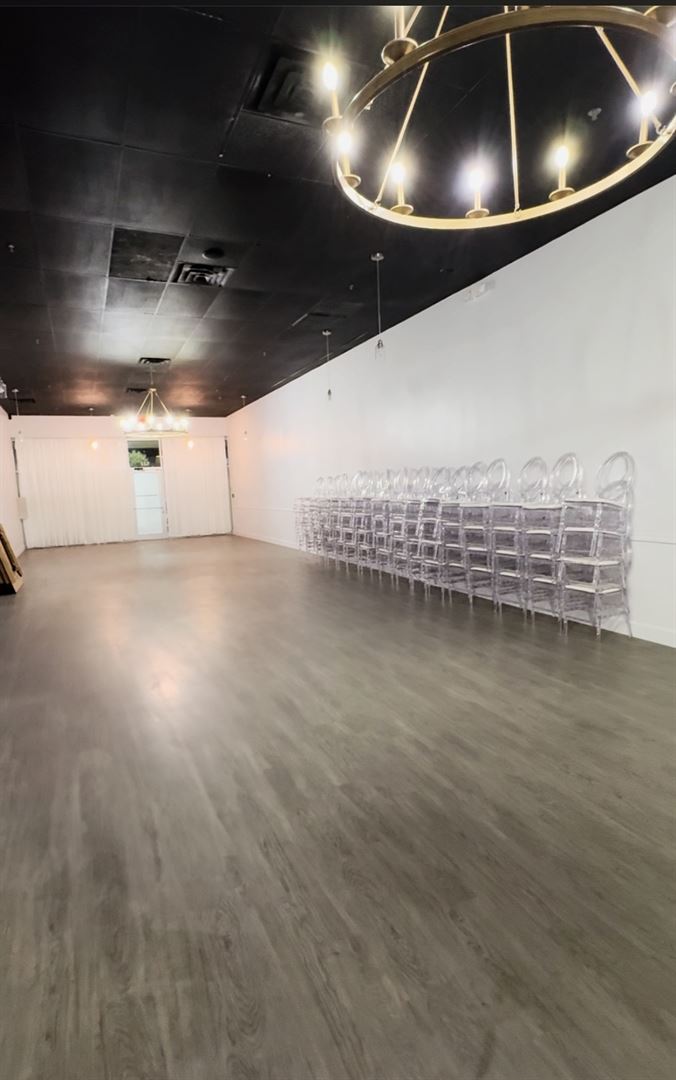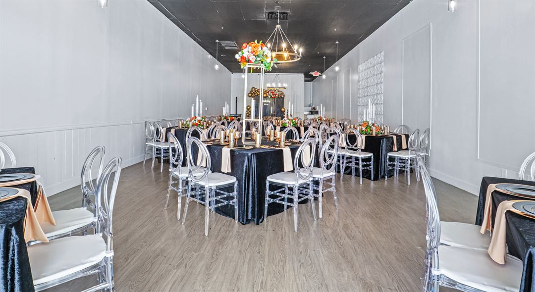 Our event venue is ideally designed for gatherings, such as baby showers, bridal showers, graduations, anniversaries, surprise engagements, and birthday celebrations. We offer customized in-house packages to meet our clients' specific needs. The space can comfortably host up to 70 seated guests. Included in the rental are 70 clear chairs, 10 square tables, and additional tables for catering purposes. Our facility features a preparation area and two restrooms, as well as Bluetooth speakers equipped with a microphone for your convenience.