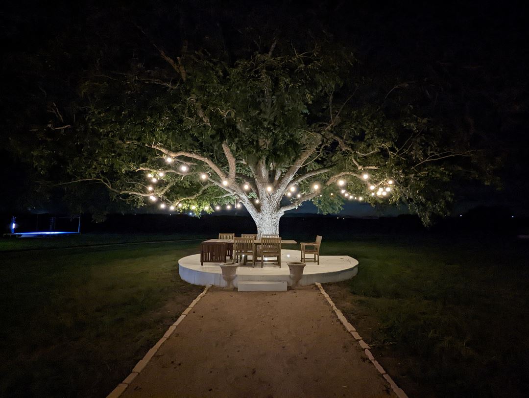 Our expansive grounds are dotted with whimsical features: a serene pond, whispering willows, and charming pathways lit by twinkling lights as night falls. The starlit Texas sky creates an ethereal canopy, adding a touch of magic to every event.
