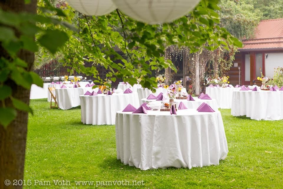 Our one-price wedding fee includes everything you would expect from your wedding venue: overnight accommodations, dance floor, surround sound speaker system and receiver, decorative lighting, hanging and potted flowers, porta-potties, garbage removal, staff assistance, and more!