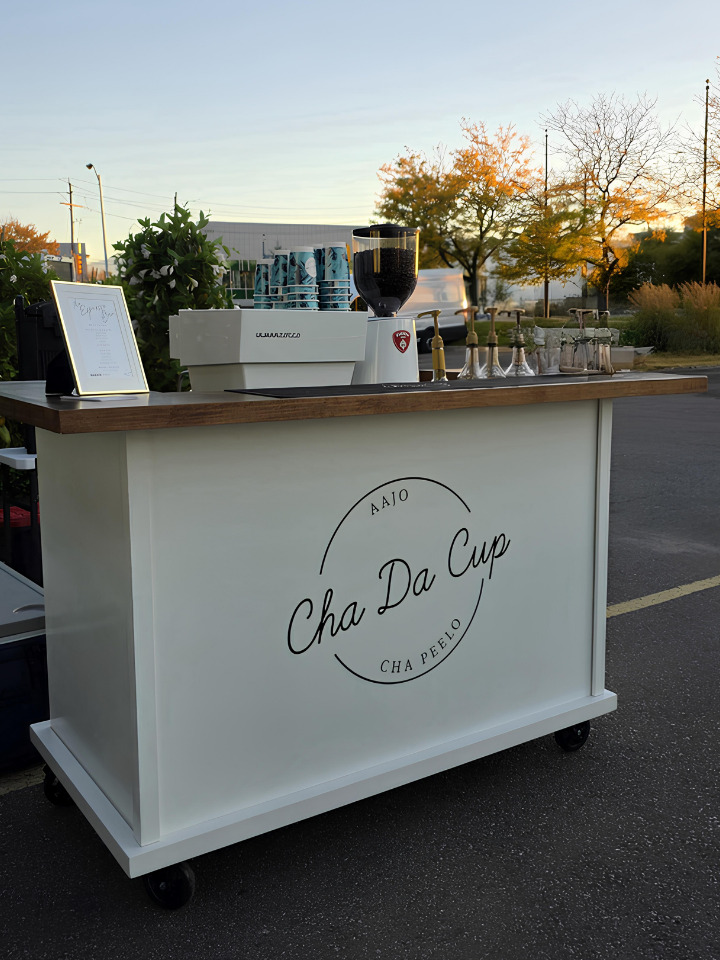 Cha Da Cup presents the world’s first mobile cha bar, now offering an espresso bar to bring a premium selection of authentic chai blends and specialty coffee to weddings, corporate events, and celebrations of all kinds. Each cup, crafted by skilled baristas, embodies rich flavors and tradition, creating an unforgettable experience for your guests. Our charming mobile setup caters to gatherings of all sizes, delivering a unique touch for both chai and coffee lovers. Whether it’s an outdoor ceremony or an intimate indoor affair, our carefully curated menu ensures every sip enhances the moment.
