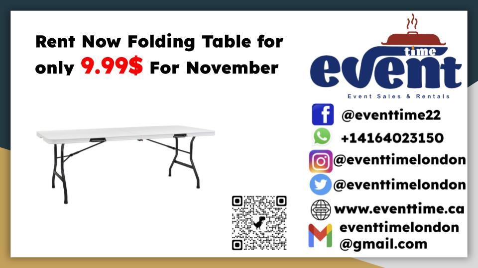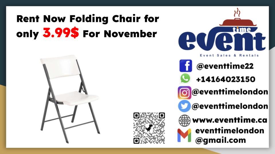Event time Sales & Rentals offers a one-stop renting experience of the finest quality chairs, tables, food warmers , beverage dispenser for all occasions. Whether you’re planning a wedding, dinner party or a corporate event, your complete satisfaction is our main objective! Serving London Ontario and surrounding areas, we can provide you with the best in quality equipment and rental service at a comparable price.