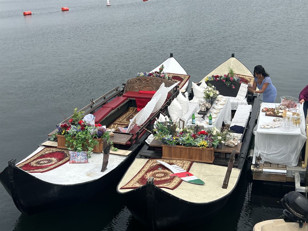 Your wedding chapel will be a floating large Gondola called the "Grand Venetian!" She seats up to 14 passengers. Based on the number of people you would like at the wedding we have enough Gondolas to seat up to 60 persons. Your ceremony will take place while floating through the enchanting canals of Naples Islands.