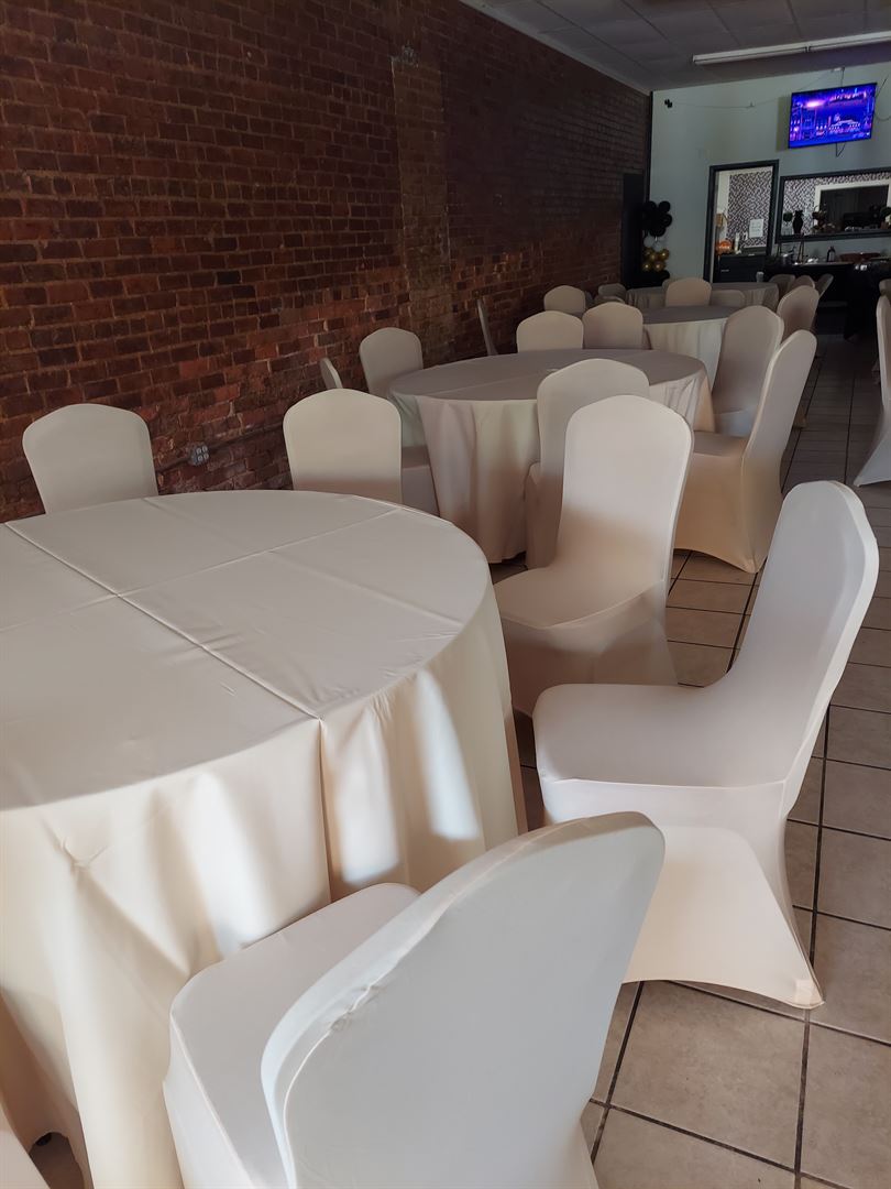 Special Features: Catering Kitchen w/Commercial Fridge Mounted TV Includes tables, and chairs with rental In-house Decorator and Caterer