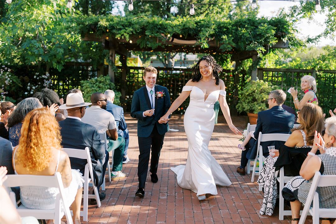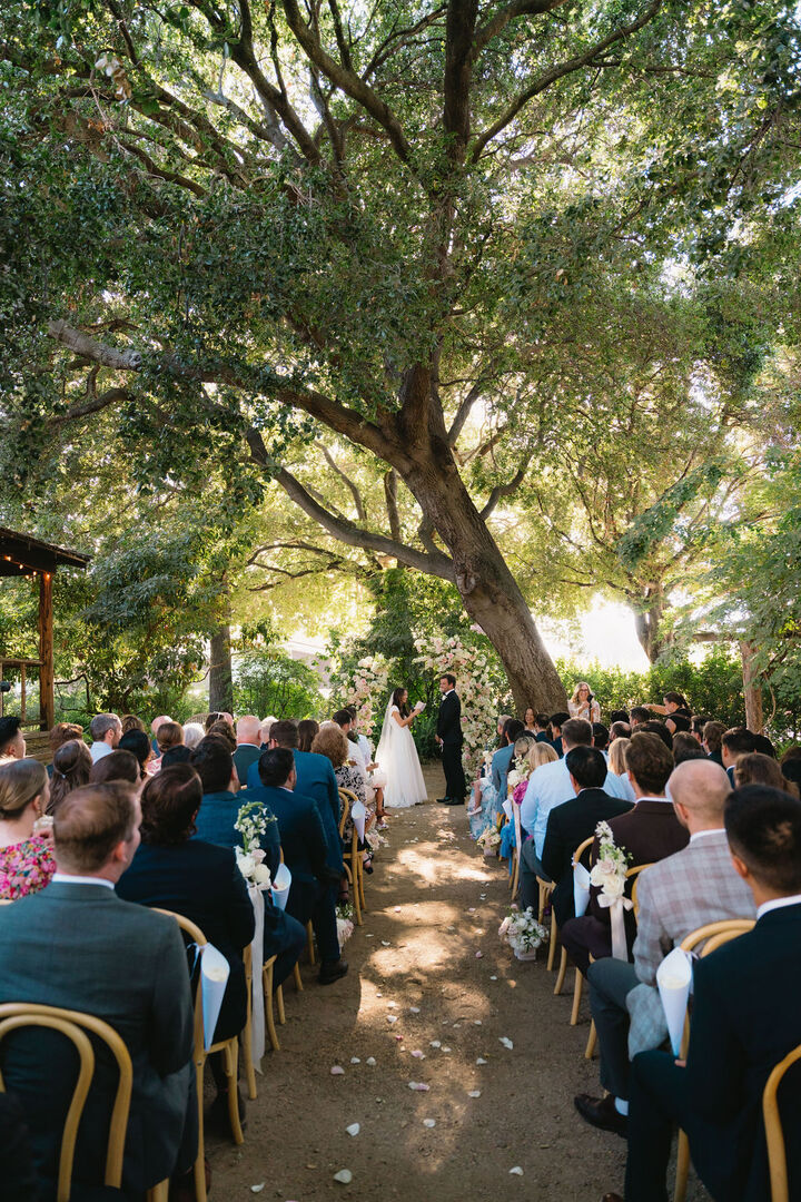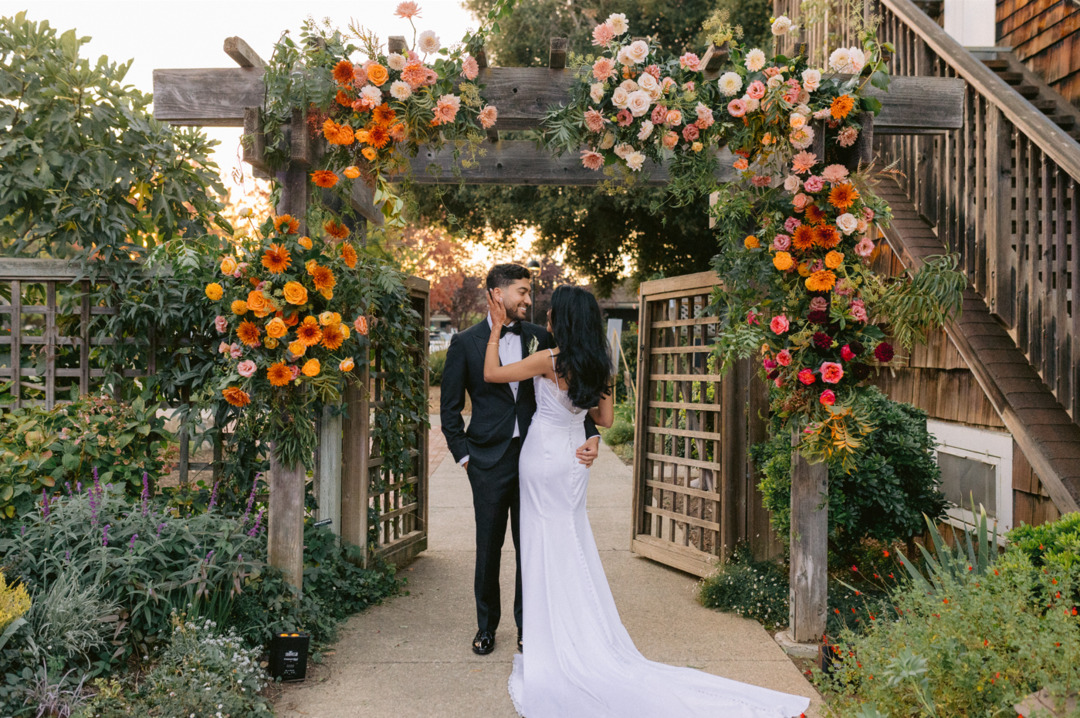Second — the venue is really ideal for a wedding ceremony and reception. Cute, cozy, and private, with lots of flowers and very light touch needed on any additional decor. The area in the back with a few tall trees made for stunning golden hour photos. It was one of those places where you can walk in and just instantly feel, “this is it” — and that’s how it was for us. Our guests loved it, too! We had a ton of glowing comments about our choice of venue. That made us so happy.