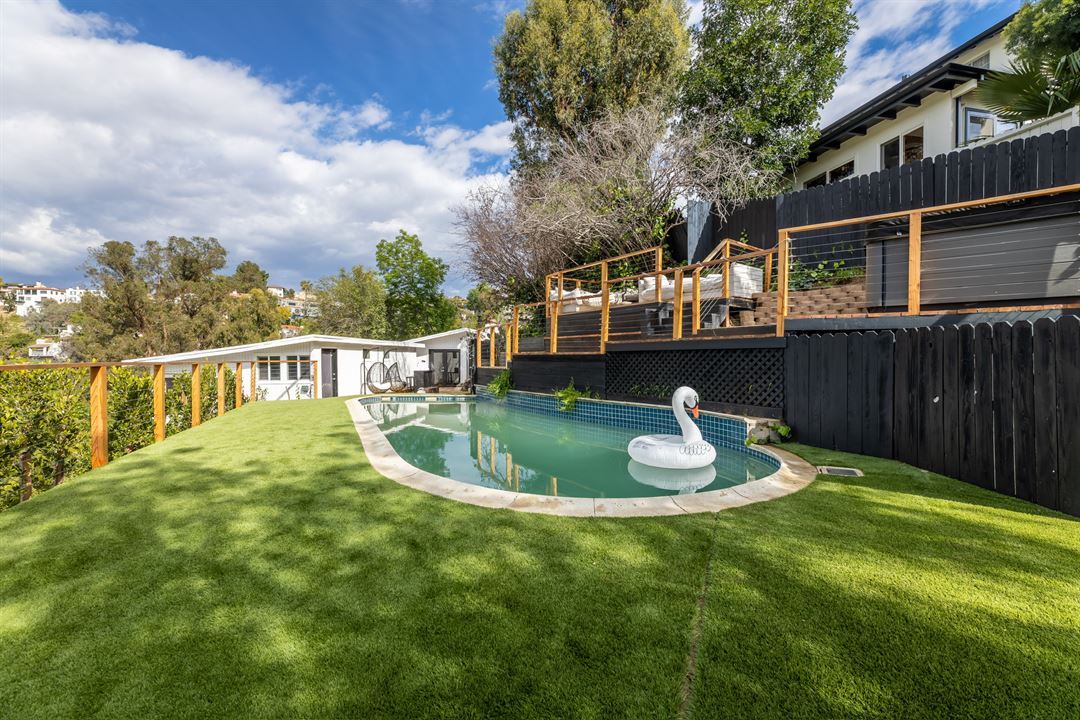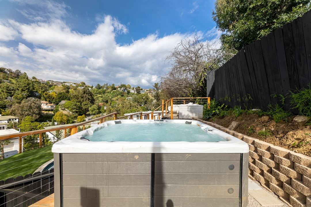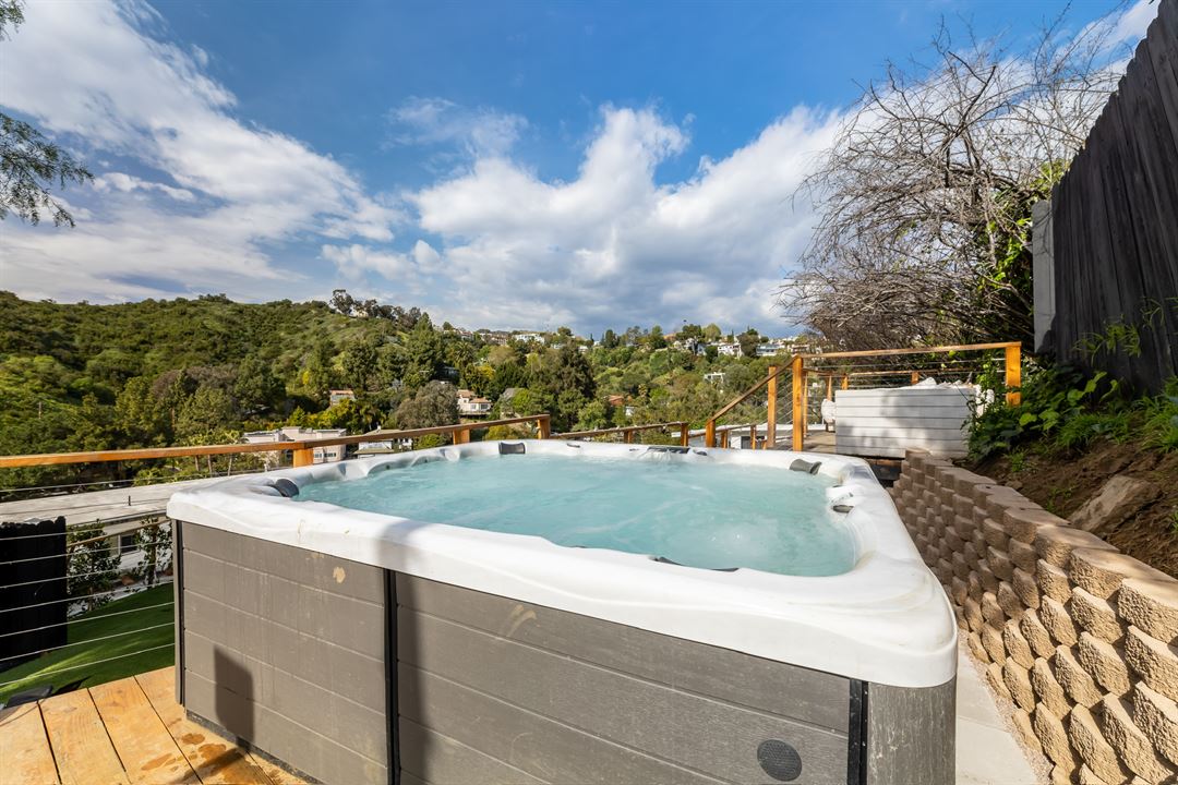 Our Hollywood Hills mansion is designed for entertaining on a grand scale. The backyard is a true paradise, featuring a sparkling 10ft pool, a spa, and multiple outdoor lounging areas. The expansive patio is perfect for you while the beautiful landscaped gardens provide a serene backdrop for relaxation and privacy.