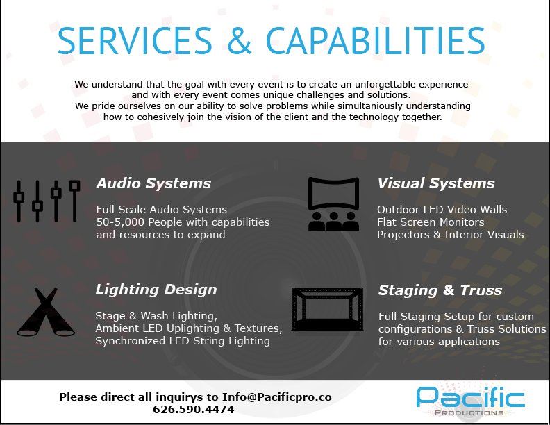 We have Custom Packages for for Special Events, Concerts, and Private Functions of 50-5,000 people.