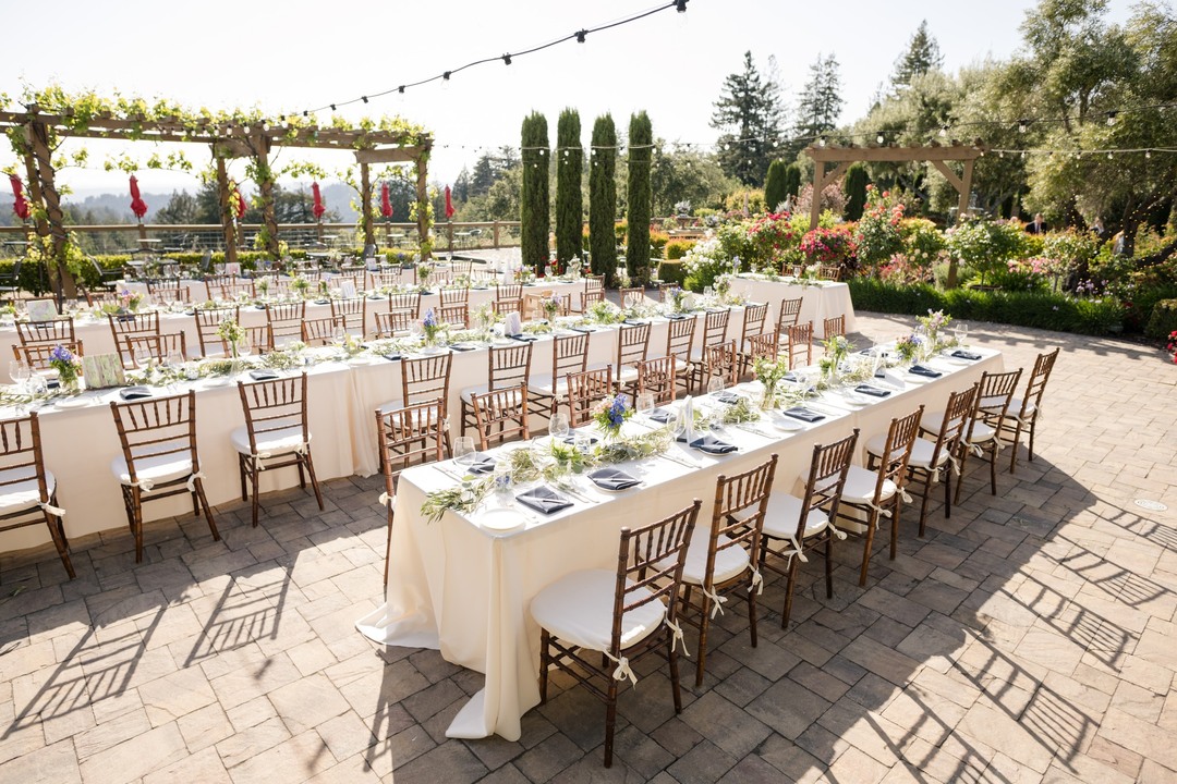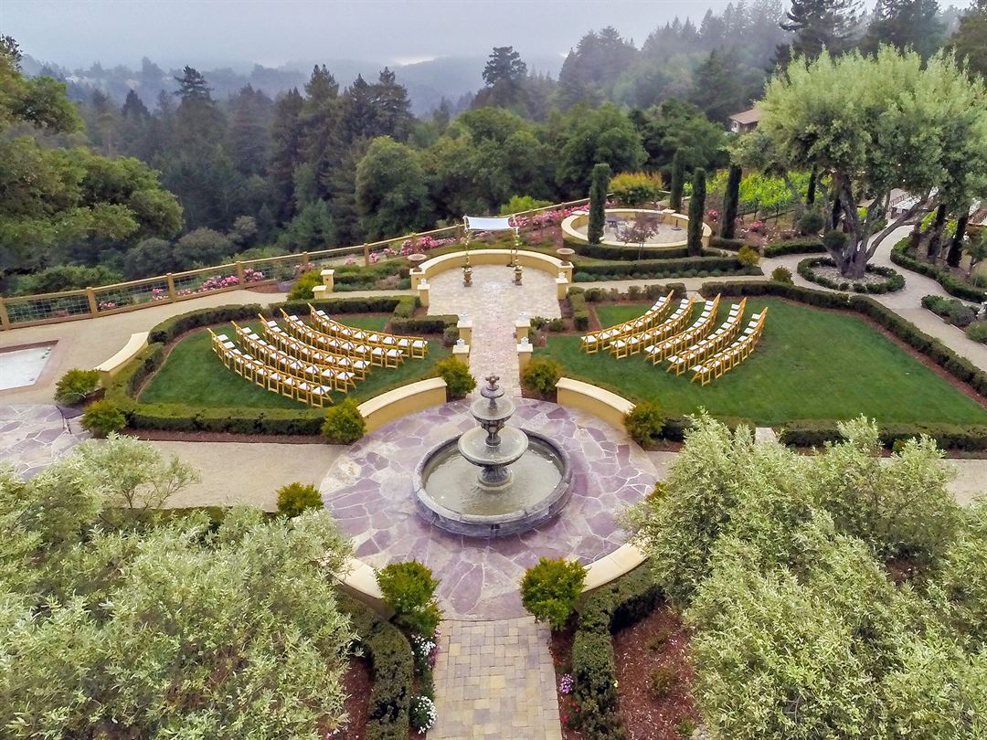 Time seems to stop upon walking into our colorful and intimate garden vignettes featuring beautiful fountains, heirloom roses, a spiral herb garden, outdoor fireplaces, a bocce ball court, and a traditional wood-fired oven. Three varieties of olive trees line the property from which we hand-pick and press the olives to produce our Estate Olive Oil.