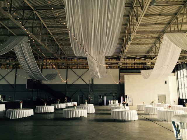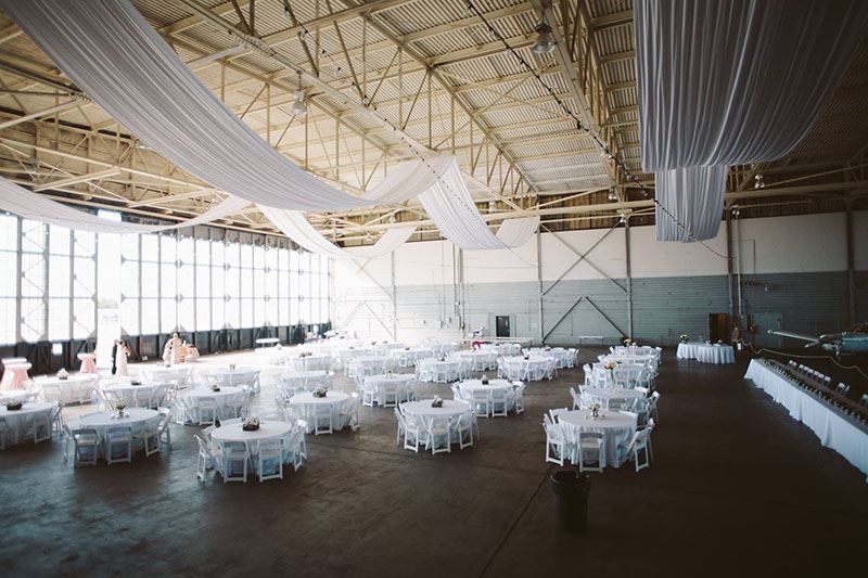 Event spaces can be set up outside of the hangars using hangars and planes as a backdrop for your events.