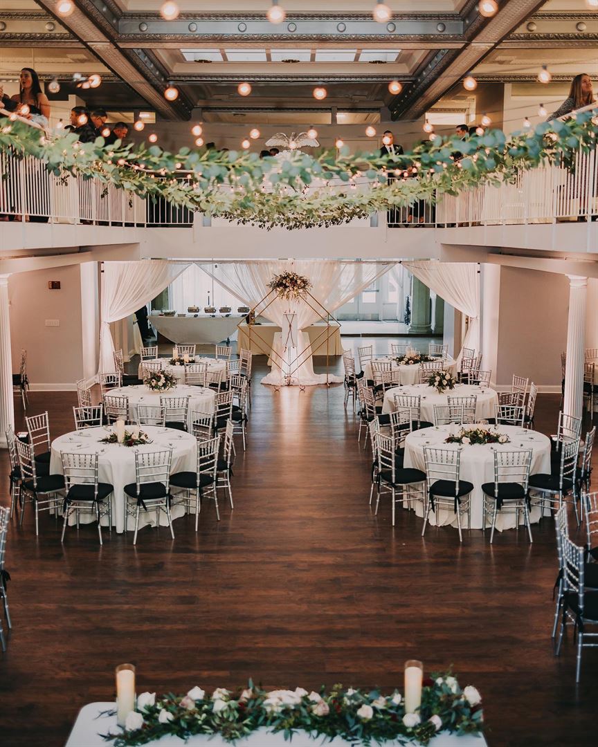 Passalino’s is an exemplary piece of 19th century European-influenced American architecture. An abundance of natural light pours through this venue’s wide arched windows, and sprawling skylight. A breathtaking, aesthetically vintage mezzanine overlooks the naturally-lit grand ballroom. Passalino’s is best suited for more intimate weddings of approximately 225 seated guests, or 300 standing guests. Some featured facilities include: