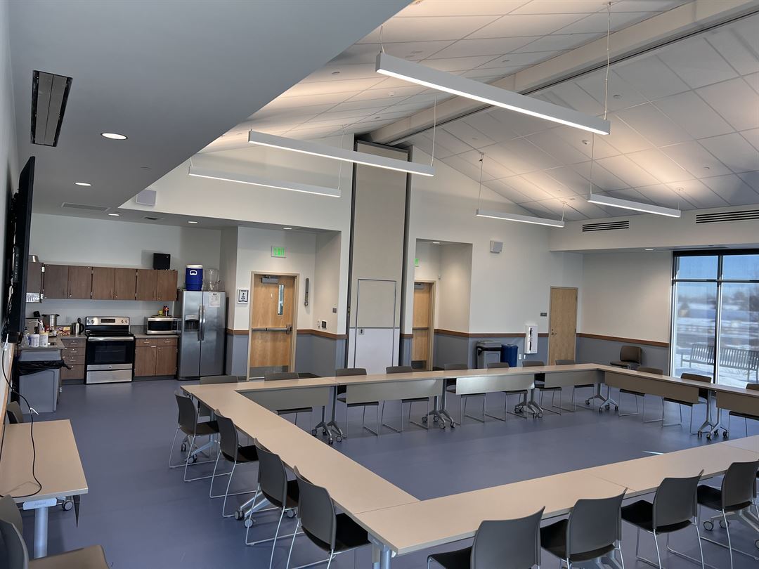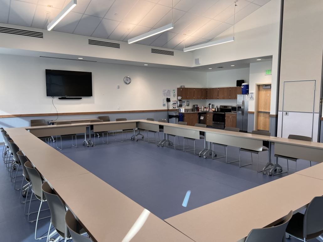 At NOCO Humane, our Community Room was designed to provide a flexible gathering space for both people and animals alike. Whether you’re interested in holding a private event, business meeting, or community gathering, our Community Room provides 1,600 square feet to accommodate up to 115 individuals.