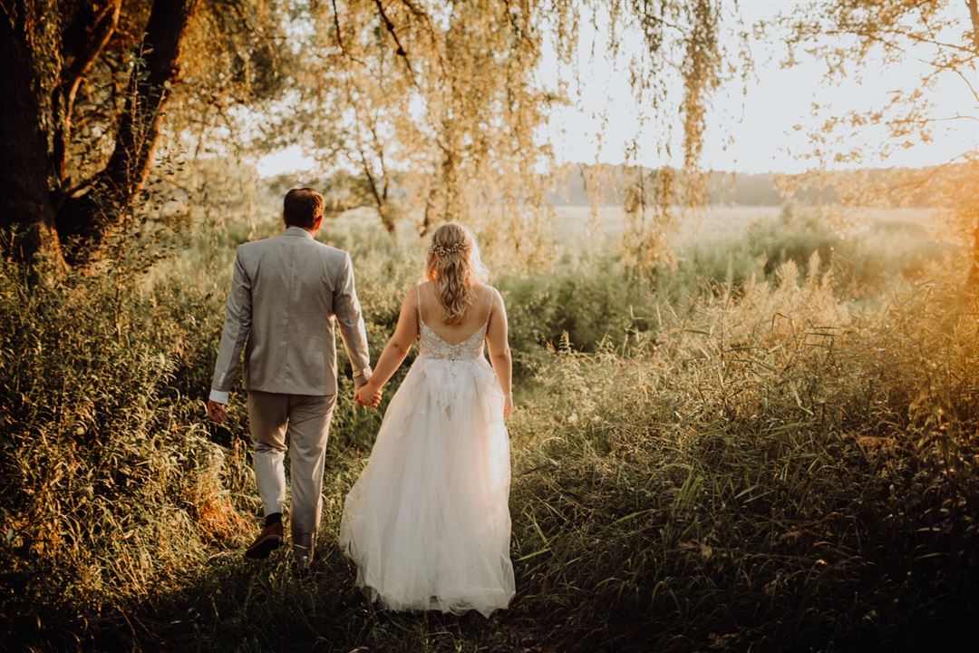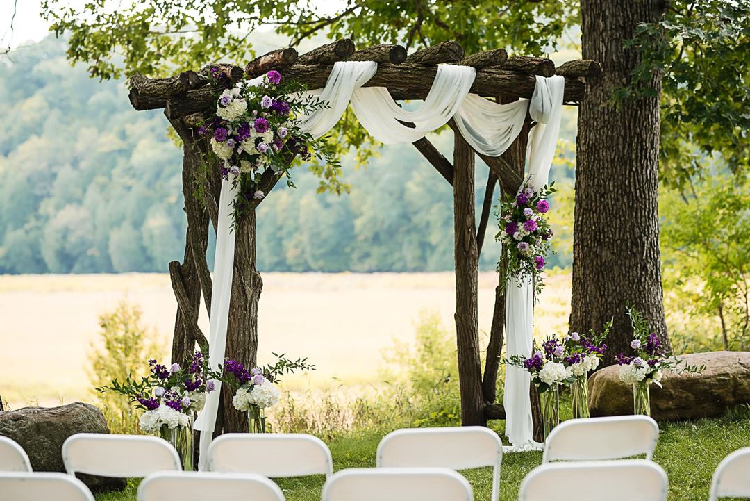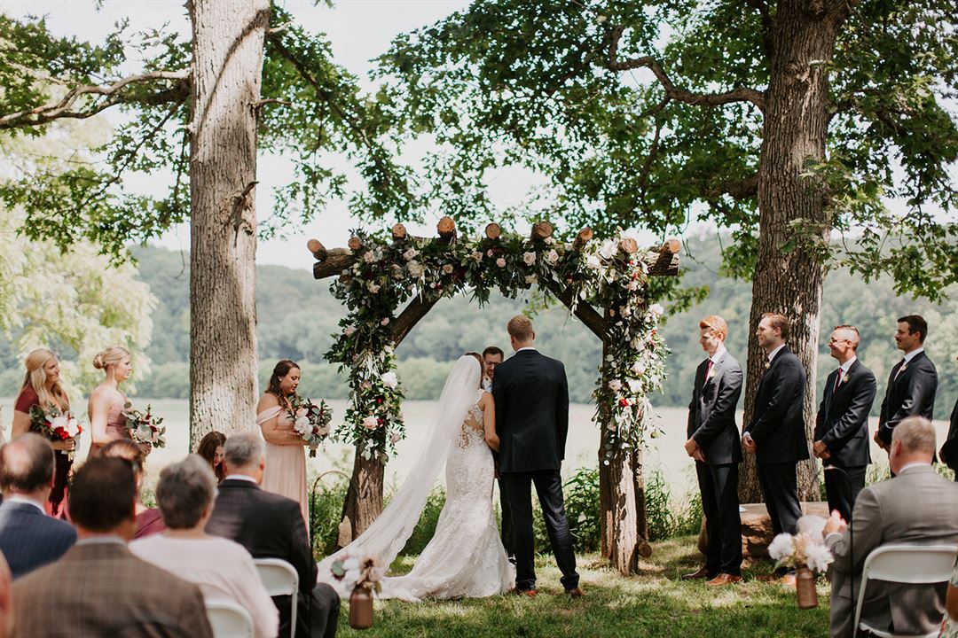 When you arrive at our beautiful River Edge Venue you will see our 1880's cozy bed & breakfast farmhouse with an old fashioned garage (the kind Pinterest ladies love), an old fashioned wishing well, along with our quaint bridal dressing building complete with two Cedar lined restrooms. Our dressing building is ideal for bridal preparation. Our setting is a totally unique tapestry of woods, water and open prairie grass, all of which your guests will view from our ceremony and reception area. We also have a beautiful old 1917 barn with silo and an old outbuilding to add to your variety of wedding photos. Another option we have with our Bed & Breakfast, is our ability to provide a private, romantic setting for the newlyweds to spend their wedding night.