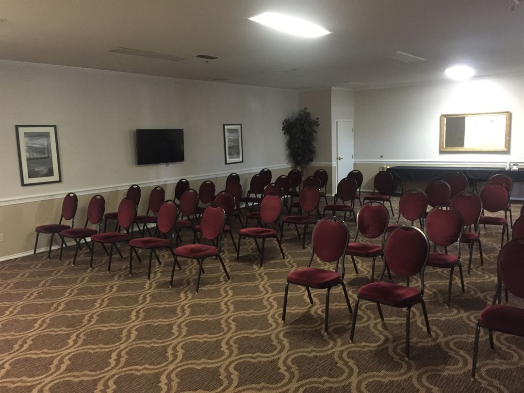Smaller meeting space 2 meeting rooms the small room dimensions are 28' X 44' Theater style holds 75 people, classroom style holds 32 people and Banquet style holds 48 people.