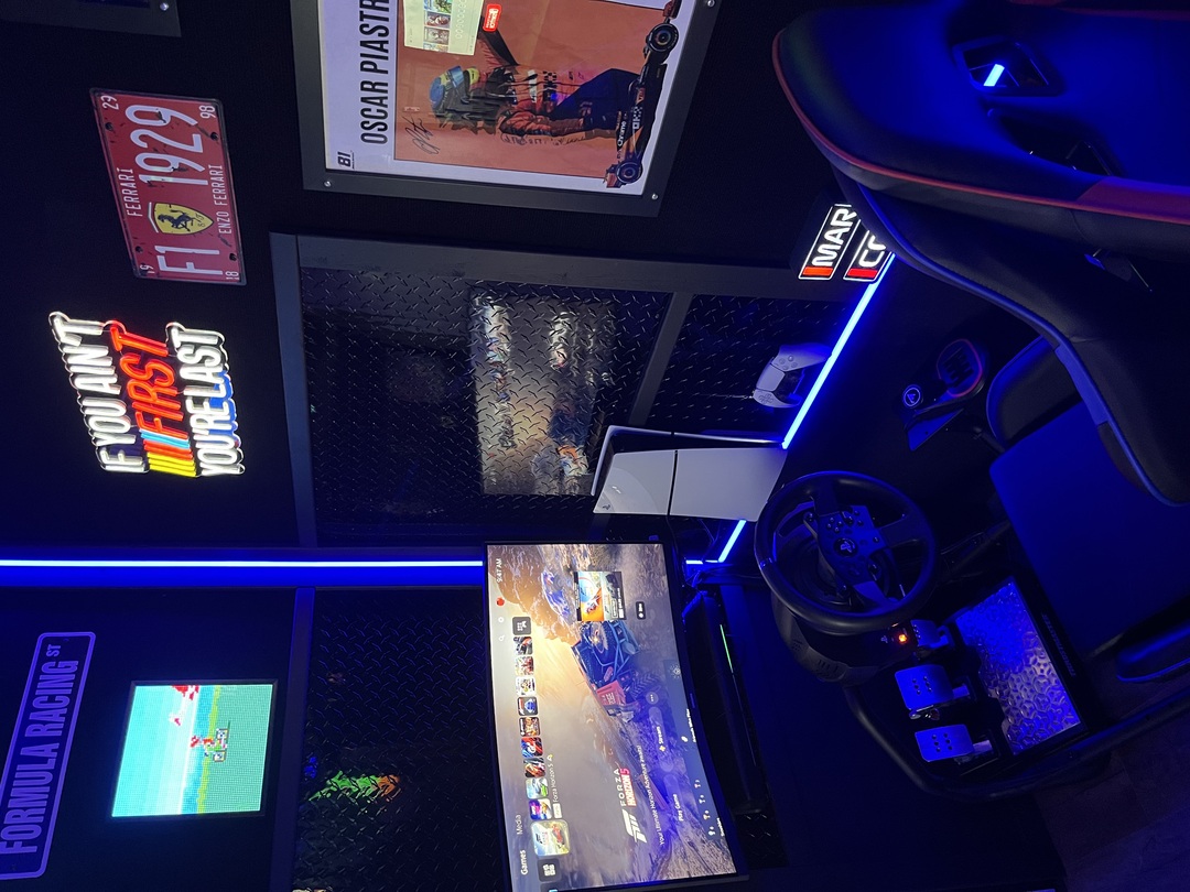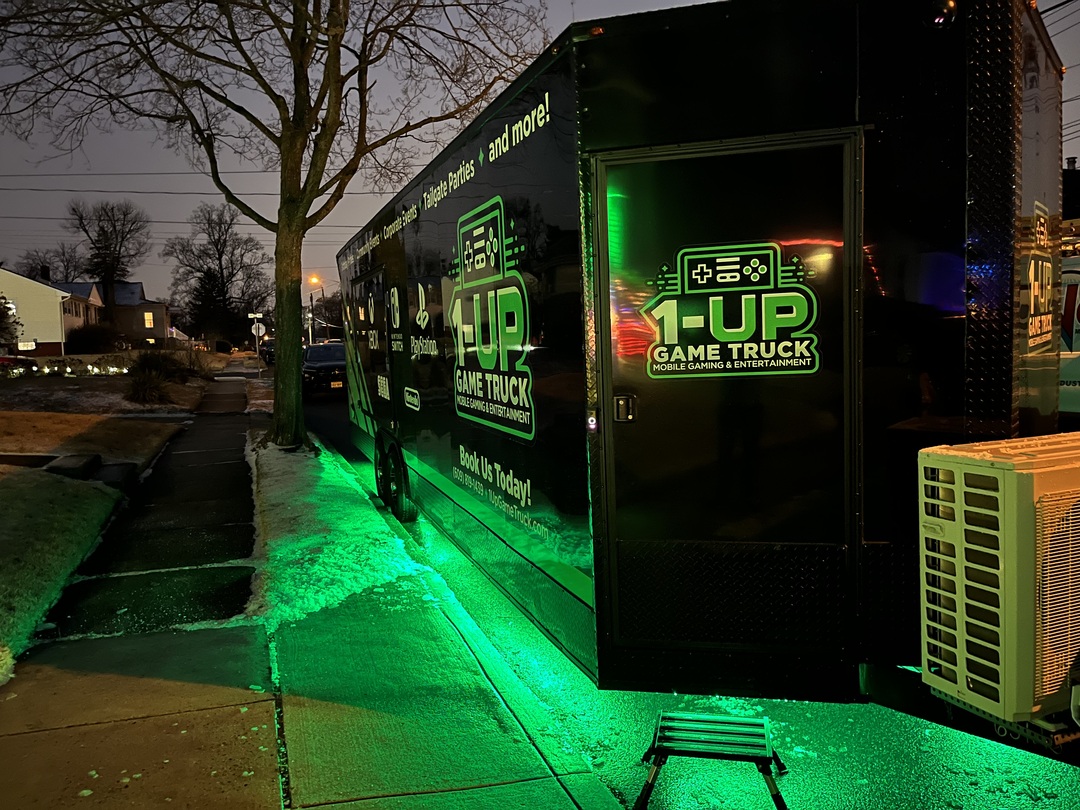 Bring the ultimate gaming party straight to your doorstep with 1-Up Game Truck. Our 30 foot, climate controlled mobile gaming theater features 8 foot ceilings and an incredible setup with 17 TVs, including two 85 inch screens and three 65 inch 4K TVs for a fully immersive experience.