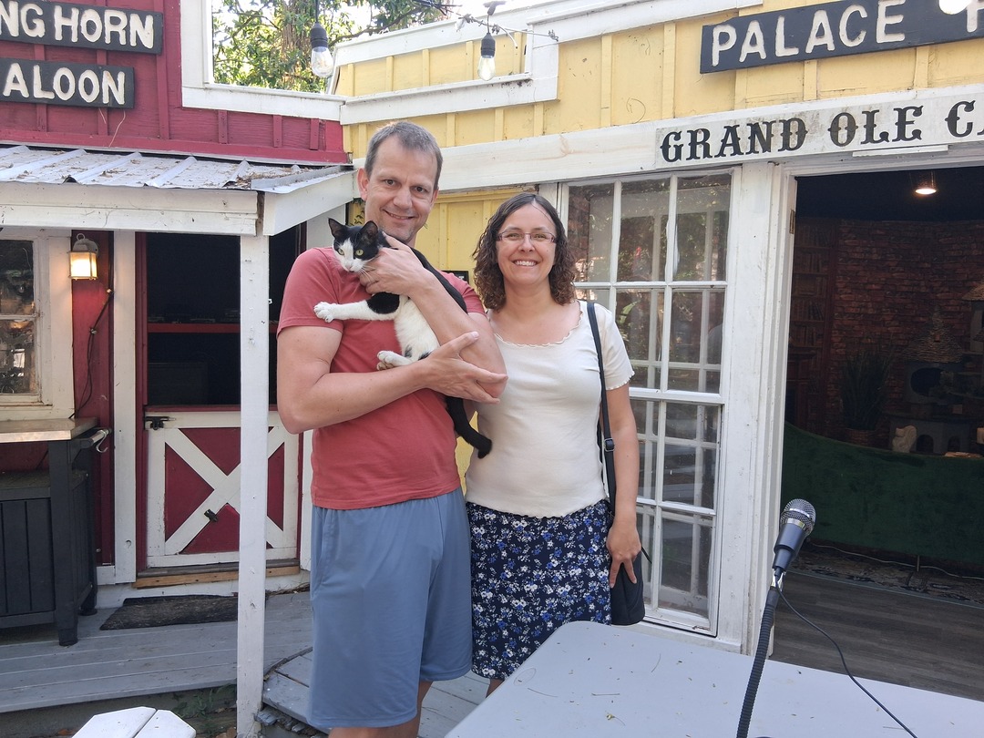 We have a lounge that can accommodate 10 people and outdoor seating for an additional 10. This is a running cat sanctuary, but we are also set up for meetings and events.